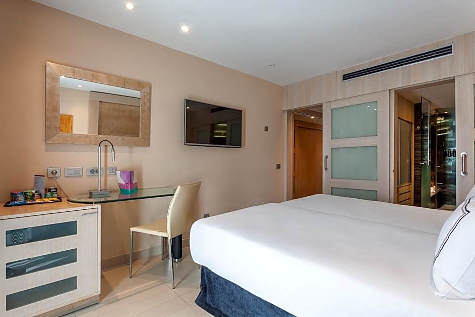 This elegant room features 1 extra large double bed or 2 single beds. It includes an armchair, LCD TV, desk and mini bar. The spacious bathroom comes with toiletries and a hairdryer.